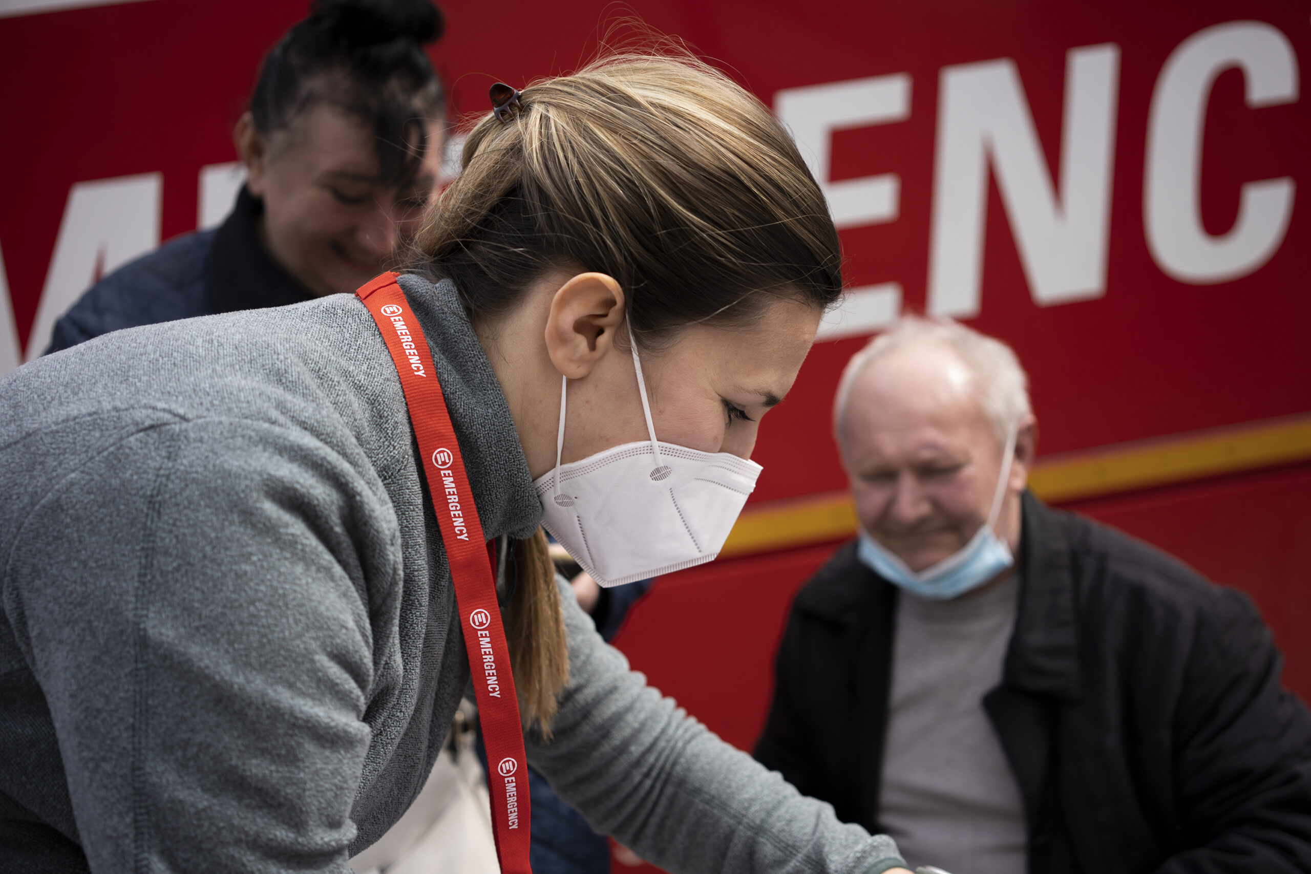 A. visited EMERGENCY’s Mobile Clinic as he was feeling pain in his shoulder. He’s affected by periartritis. A. was provided with a medical checkup and the medicine he needs by Federica and Caterina, our Doctor and nurse on the ground.
