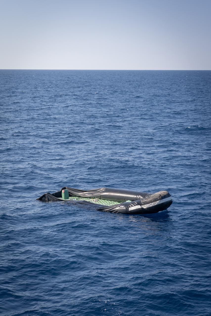“On Thursday 26 evening and Friday 27 morning, we encountered an empty, semi-sunken wooden boat and three empty rubber dinghies with semi-deflated tubes and no engines,” said Jonathan Nanì La Terra, Head of Mission on board. “We do not know what happened to these vessels or to the people on board, but these elements lead us to believe that there may have been illegal collective interceptions and pushbacks by third parties or the so-called Libyan Coast Guard.”